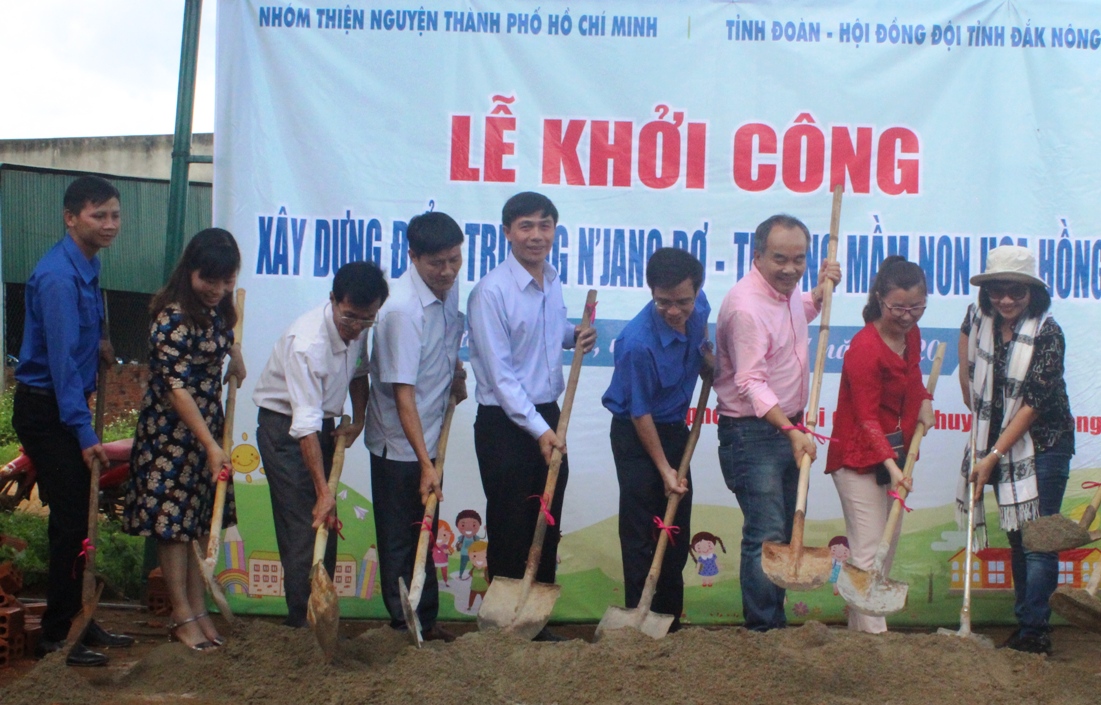 Web.ĐTN: Sáng 25/7, Tỉnh đoàn, Hội đồng Đội tỉnh Đắk Nông phối hợp với Nhóm Thiện nguyện TP. Hồ Chí Minh tổ chức Lễ khởi công xây dựng điểm trường N'Jang Bơ - trường Mầm non Hoa Hồng - xã Trường Xuân - huyện Đắk Song - tỉnh Đắk Nông.