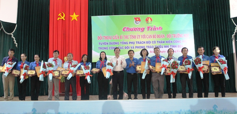 Web.ĐTN: Sáng 12/6, Bí thư Tỉnh ủy Bến Tre đã đối thoại với cán bộ Đoàn - Đội trường học với chủ đề "Hành động vì một thế hệ tương lai mang khát vọng Bến Tre; Tuyên dương Tổng phụ trách Đội có thâm niên cống hiến trong công tác Đội và phong trào thiếu nhi tỉnh Bến Tre".