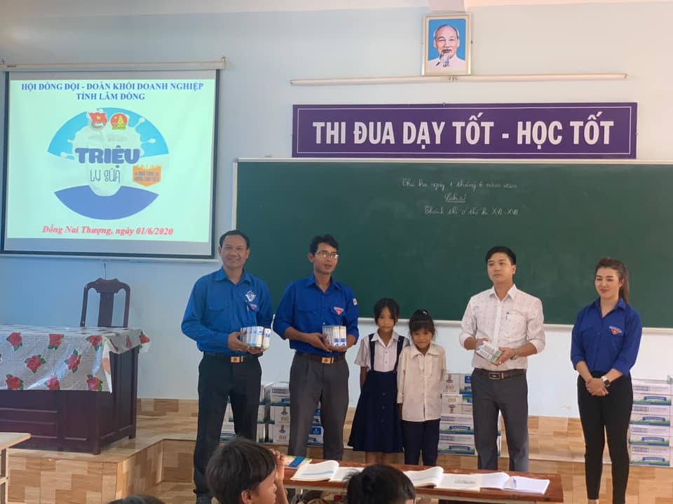 Web.ĐTN: Trong 2 ngày 01 và 02/6, Hội đồng Đội tỉnh phối hợp với Đoàn Khối Doanh nghiệp tỉnh Lâm Đồng tổ chức chương trình tặng 4.000 ly sữa và 10 suất học bổng cho trẻ em có hoàn cảnh khó khăn tại huyện Đạ Huoai, Đạ Tẻh và Cát Tiên.