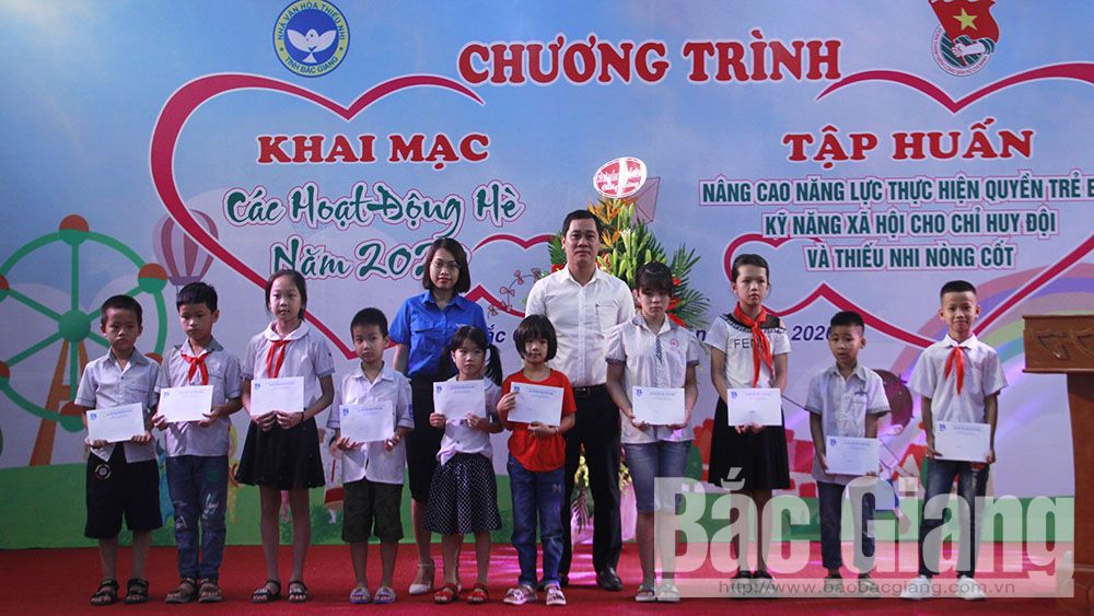 Web.ĐTN: Sáng 07/6, Nhà Văn hoá Thiếu nhi tỉnh Bắc Giang phối hợp với Thành đoàn, Hội đồng Đội Thành phố long trọng tổ chức Khai mạc hoạt động hè, tập huấn nâng cao kỹ năng quyền trẻ em, kỹ năng xã hội cho Chỉ huy Đội và thiếu nhi nòng cốt năm 2020.