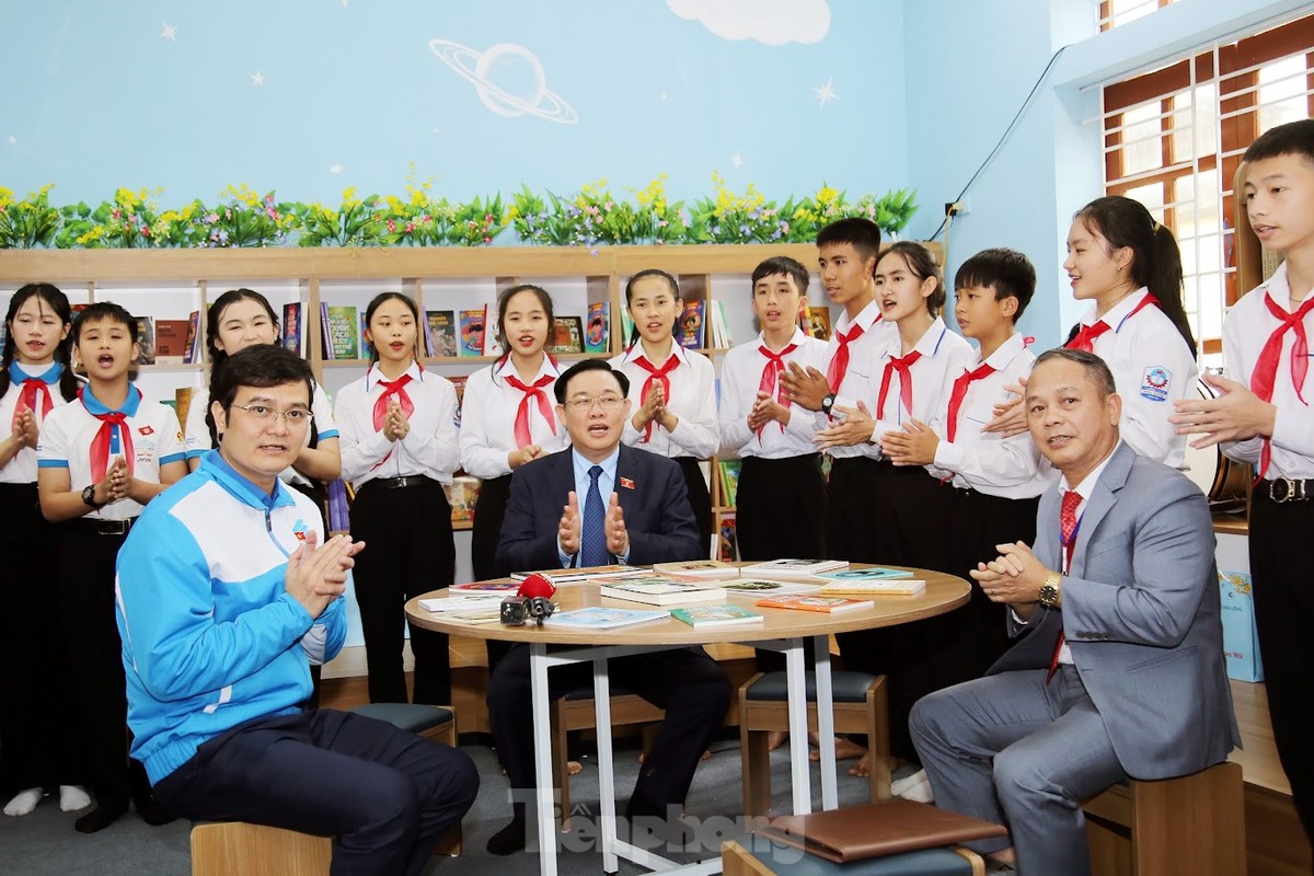 Trong “Không gian đọc sách, tương tác và sinh hoạt Đội” trường THCS Nam Thanh, huyện Nam Đàn (Nghệ An), Chủ tịch Quốc hội Vương Đình Huệ cùng lãnh đạo bộ, ban, ngành, Trung ương Đoàn TNCS Hồ Chí Minh và thiếu nhi Nghệ An cùng cất vang hát bài “Ai yêu Bác Hồ Chí Minh hơn thiếu niên nhi đồng”.