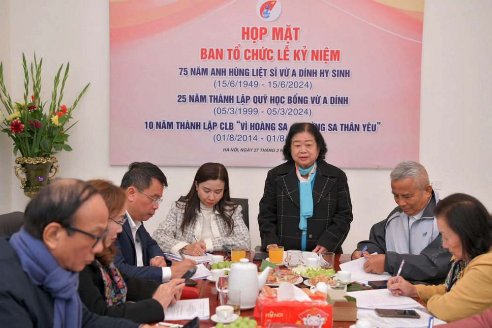 ĐTN: Sáng 27/2, tại Hà Nội, Quỹ học bổng Vừ A Dính, CLB "Vì Hoàng Sa -Trường Sa thân yêu" đã tổ chức họp mặt Ban tổ chức Lễ kỷ niệm 75 năm ngày Anh hùng Liệt sĩ Vừ A Dính hi sinh (15/6/1949 - 15/6/2024); 25 thành lập Quỹ Học bổng Vừ A Dính (05/3/1999 - 05/3/2024); 10 năm thành lập CLB "Vì Hoàng sa - Trường Sa thân yêu" (01/8/2014 - 01/8/2024).