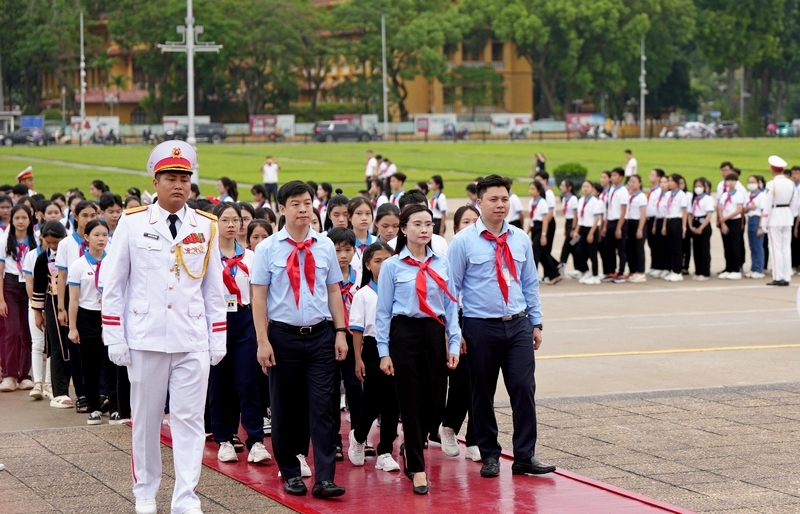 Đại biểu Phiên họp giả định Quốc hội trẻ em tưởng niệm các Anh hùng liệt sĩ và vào lăng viếng Chủ tịch Hồ Chí Minh