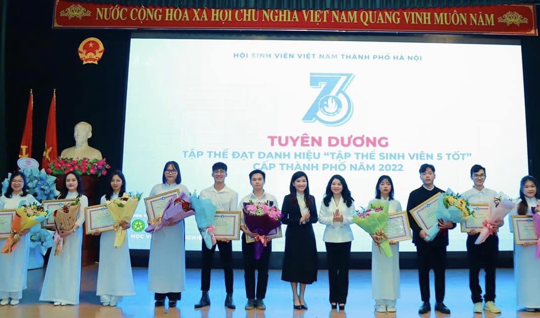 ĐTN: Chiều 5/1, Hội Sinh viên Việt Nam Thành phố Hà Nội tổ chức Kỷ niệm 73 năm Ngày truyền thống Học sinh, sinh viên và Hội Sinh viên Việt Nam (09/01/1950 - 09/01/2023); tuyên dương cá nhân, tập thể đạt danh hiệu “Sinh viên 5 tốt” cấp Thành phố năm 2022.