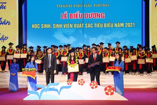 ĐTN: Ngày 11/01, UBND thành phố Hải Phòng tổ chức Lễ Biểu dương học sinh, sinh viên xuất sắc tiêu biểu thành phố Hải Phòng năm 2021. Các em học sinh, sinh viên được tôn vình đều có thành tích đặc biệt xuất sắc trong năm học 2020-2021.
