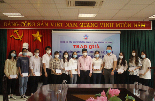 ĐTN: Tỉnh đoàn Bắc Giang phối hợp Hội cựu Học viên, Sinh viên Trường Đại học Kinh tế Quốc dân tỉnh Bắc Giang tổ chức gặp mặt, động viên, trao quà hỗ trợ, đồng hành cùng sinh viên Bắc Giang đang học tập tại trường ĐH Kinh tế Quốc dân bị ảnh hưởng bởi dịch bệnh Covid-19.