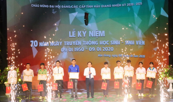 Web.ĐTN: Vừa qua, tại Nhà Thiếu nhi tỉnh An Giang, nhân kỷ niệm 70 năm Ngày truyền thống học sinh, sinh viên Việt Nam (9/1/1950 - 9/1/2020), Tỉnh đoàn An Giang đã tổ chức tuyên dương sinh viên đạt danh hiệu “Sinh viên 5 tốt”, “Học sinh 3 rèn luyện” tỉnh An Giang năm học 2018 - 2019.