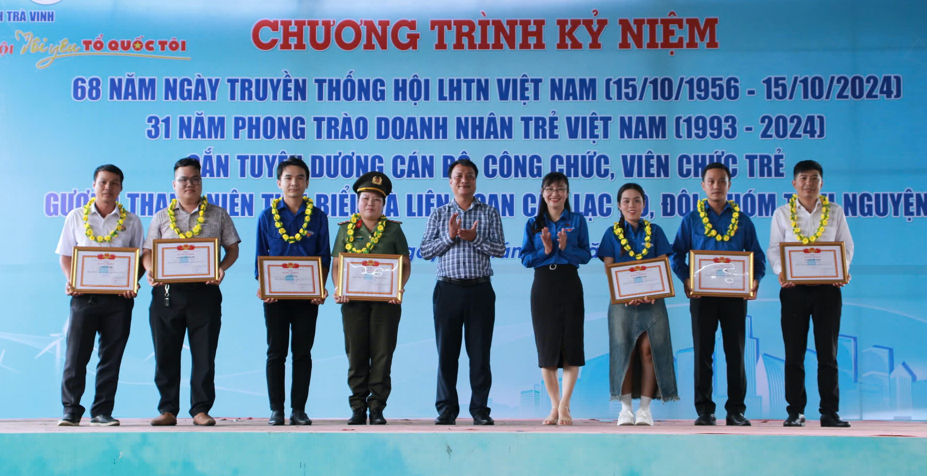 ĐTN: Chiều ngày 10/10/2024, tại tỉnh Trà Vinh, Ủy ban Hội LHTN Việt Nam tỉnh, Hội Doanh nhân trẻ tỉnh tổ chức chương trình kỷ niệm 68 năm Ngày truyền thống Hội LHTN Việt Nam (15/10/1956 – 15/10/2024); 31 năm phong trào Doanh nhân trẻ Việt Nam (1993 – 2024) và chào mừng thành công Đại hội đại biểu Hội LHTN Việt Nam tỉnh Trà Vinh lần thứ VII, nhiệm kỳ 2024 – 2029.