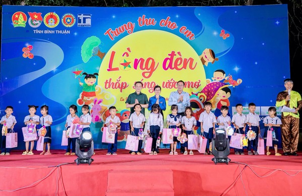 ĐTN: Nhân dịp Tết Trung thu, tối 12/9 tại Trường tiểu học và THCS La Dạ (Hàm Thuận Bắc), Tỉnh đoàn phối hợp cùng Sở Lao động, Thương binh và Xã hội, Sở Xây dựng, Cục thi hành án dân sự tỉnh và các cá nhân đồng hành tổ chức chương trình “Đêm hội trăng rằm”, qua đó tặng nhiều suất học bổng và phần quà trung thu cho các em thiếu nhi vùng cao La Dạ.