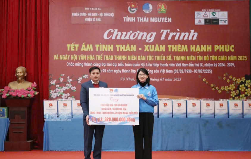 ĐTN: Chiều 10/1/2025, tại tỉnh Thái Nguyên, Ban Thường vụ Tỉnh đoàn, Ủy ban Hội LHTN Việt Nam tỉnh Thái Nguyên tổ chức chương trình “Tết ấm tình thân - Xuân thêm hạnh phúc” và Ngày hội văn hóa, thể thao thanh niên dân tộc thiểu số, thanh niên tín đồ tôn giáo năm 2025.