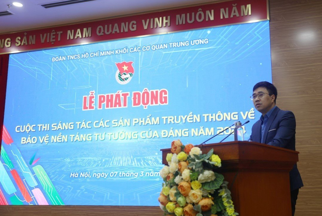 ĐTN: Chiều 07/3/2024, Ban Thường vụ Đoàn Khối các cơ quan Trung ương tổ chức Lễ phát động Cuộc thi sáng tác sản phẩm truyền thông về bảo vệ nền tảng tư tưởng của Đảng năm 2024 dưới sự chủ trì của đồng chí Bùi Hoàng Tùng, Ủy viên BCH Đảng bộ Khối, Ủy viên Ban Thường vụ T.Ư Đoàn, Bí thư Đoàn Khối.