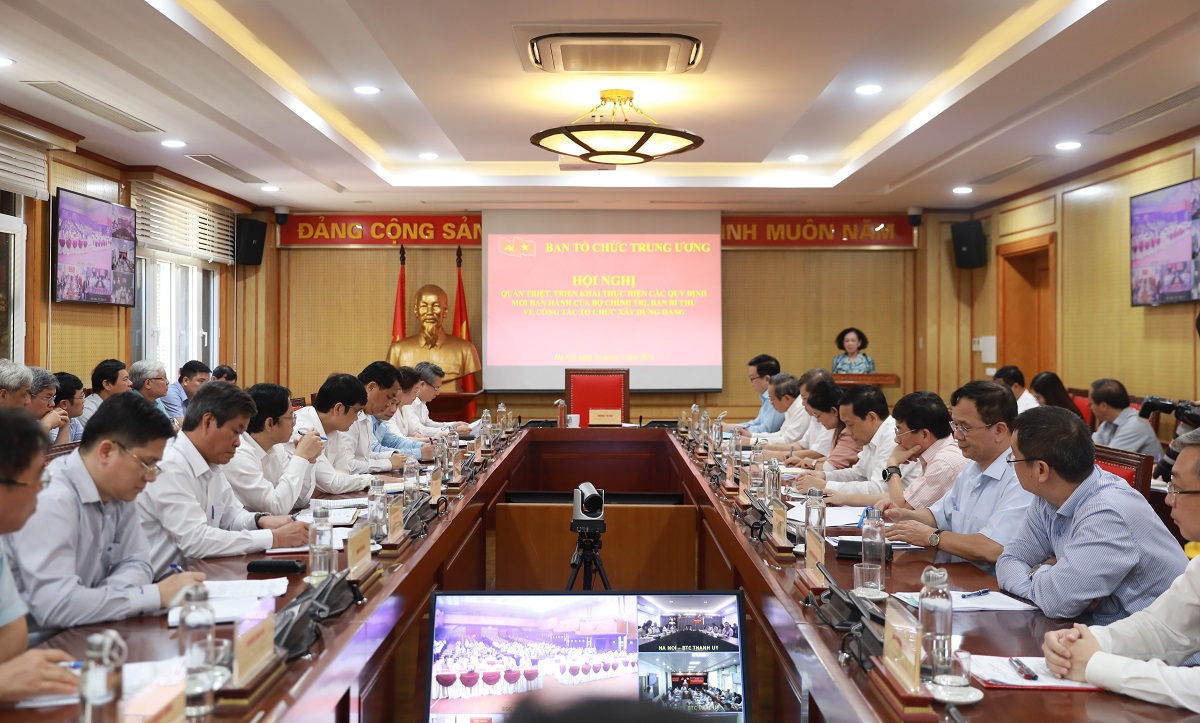 Sáng 26/7, tại Hà Nội, Ban Tổ chức Trung ương tổ chức Hội nghị quán triệt, triển khai thực hiện các quy định mới ban hành của Bộ Chính trị, Ban Bí thư về công tác tổ chức xây dựng Đảng. Đồng chí Trương Thị Mai, Ủy viên Bộ Chính trị, Thường trực Ban Bí thư, Trưởng Ban Tổ chức Trung ương chủ trì Hội nghị.