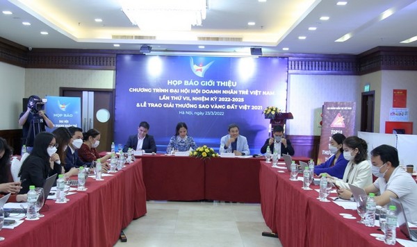 ĐTN: Sáng 23-3, tại Hà Nội, Trung ương Hội Doanh nhân trẻ (DNT) Việt Nam tổ chức họp báo giới thiệu chương trình Đại hội đại biểu toàn quốc Hội DNT Việt Nam lần thứ VII, nhiệm kỳ 2022-2025 và Lễ trao Giải thưởng Sao Vàng đất Việt 2021.