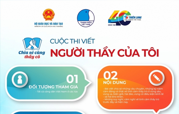 ĐTN: Cuộc thi viết “Người thầy của tôi” do Bộ Giáo dục và Đào tạo, Trung ương Hội LHTN Việt Nam cùng Tập đoàn Thiên Long tổ chức sẽ hết hạn nhận bài dự thi trước ngày 15/10/2021.
