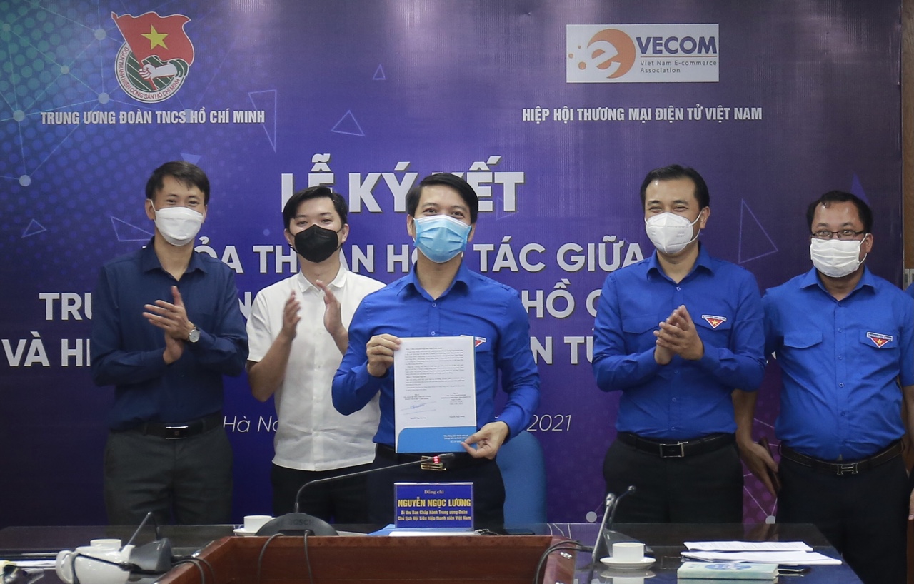 ĐTN: Ngày 23/9, tại Hà Nội đã diễn ra lễ ký kết thỏa thuận hợp tác trực tuyến giữa Trung ương Đoàn TNCS Hồ Chí Minh và Hiệp hội Thương mại điện tử Việt Nam (VECOM).