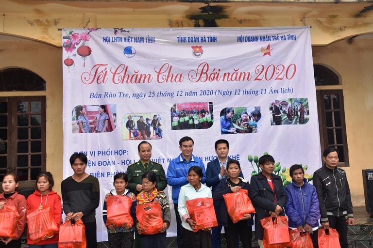 Web.ĐTN: Tỉnh đoàn, Hội LHTN Việt Nam tỉnh, Hội Doanh nhân trẻ Hà Tĩnh phối hợp với Huyện đoàn Hương Khê và Đồn Biên phòng Bản Giàng tổ chức chương trình vui Tết Chăm Cha Bới cho đồng bào dân tộc Chứt ở Bản Rào Tre.