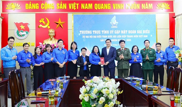 ĐTN: Chiều ngày 12/12, tại cơ quan Tỉnh đoàn, đồng chí Hoàng Nghĩa Hiếu, Phó Bí thư thường trực Tỉnh ủy, Chủ tịch Hội đồng nhân dân tỉnh có buổi gặp mặt Đoàn đại biểu dự Đại hội đại biểu toàn quốc Hội Liên hiệp Thanh niên Việt Nam lần thứ IX, nhiệm kỳ 2024 - 2029.