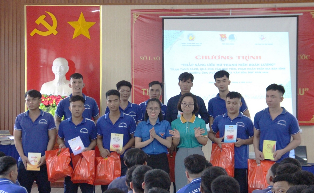 ĐTN: Sáng 20/4, Tỉnh Đoàn - Hội LHTN Việt Nam tỉnh phối hợp với Chúng thanh niên phật tử Phật Quang Bình Phước và CLB vòng tay yêu thương tổ chức Chương trình “Thắp sáng ước mơ thanh niên hoàn lương” và trao tặng sách, quà cho các phạm nhân, học viên hưởng ứng Ngày sách và văn hoá đọc năm 2024 tại Trại tạm giam Công an tỉnh và Cơ sở cai nghiện ma tuý tỉnh.
