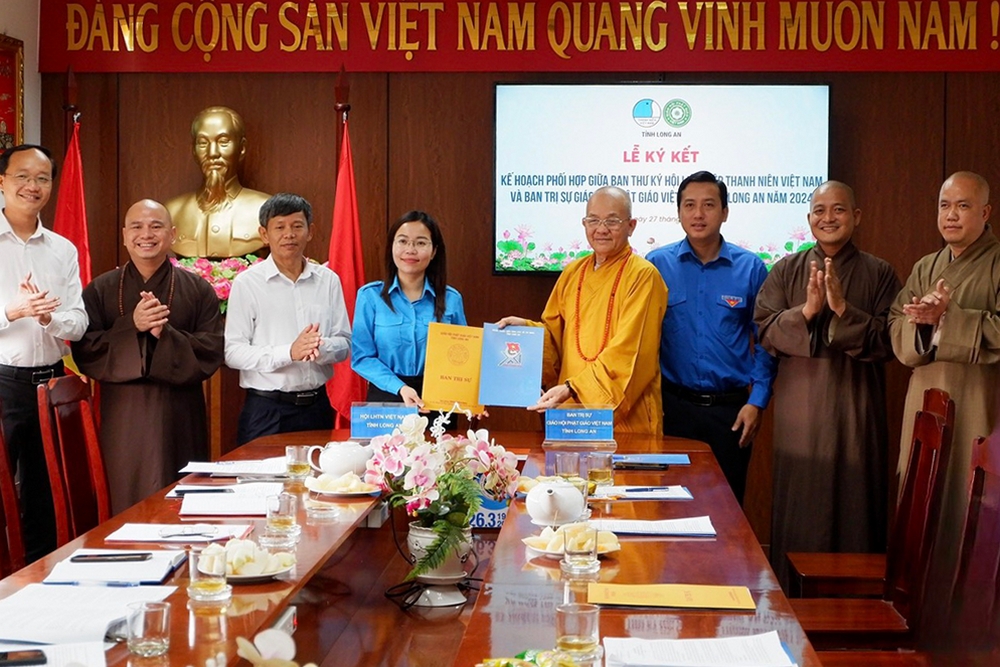 ĐTN: Ngày 27/3, Hội Liên hiệp Thanh niên Việt Nam tỉnh Long An tổ chức lễ ký kết Kế hoạch phối hợp với Giáo hội Phật giáo Việt Nam (GHPGVN) tỉnh Long An năm 2024.