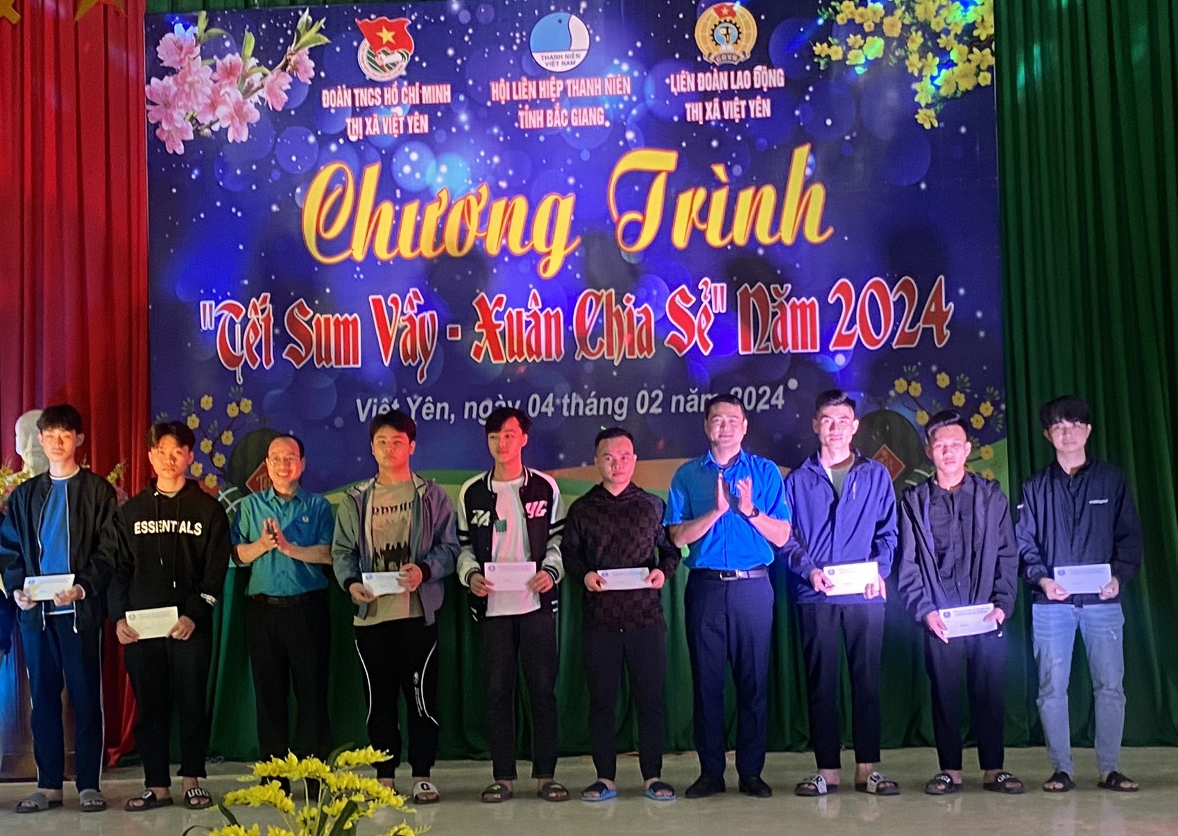 ĐTN: Ngày 04/02, tại Nhà văn hoá Tổ Dân phố Vân Cốc 2, phường Vân Trung, thị xã Việt Yên, Hội Liên hiệp Thanh niên tỉnh Bắc Giang phối hợp với Huyện đoàn, Liên đoàn Lao động huyện Việt Yên tổ chức Chương trình “Tết sum vầy - Xuân chia sẻ” vui cùng thanh niên công nhân các câu lạc bộ nhà trọ năm 2024.