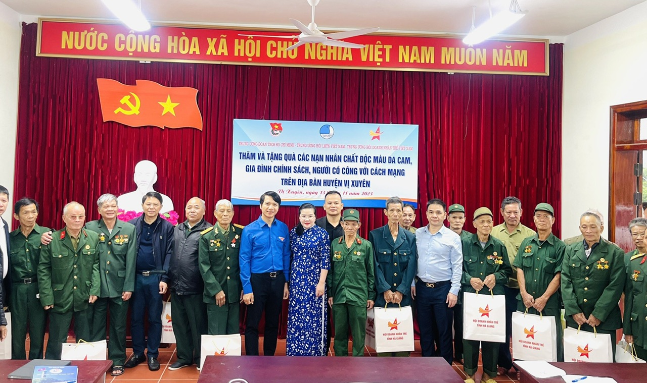 ĐTN: Nhân dịp Đại hội Hội Doanh nhân trẻ tỉnh Hà Giang lần thứ II, nhiệm kỳ 2023 - 2028, ngày 13/11, đoàn công tác do đồng chí Nguyễn Ngọc Lương, Bí thư thường trực T.Ư Đoàn, Chủ tịch Hội LHTN Việt Nam làm trưởng đoàn đã thăm và tặng quà cho các nạn nhân chất độc da cam tại huyện Vị Xuyên (tỉnh Hà Giang).