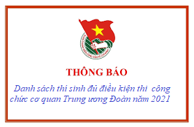 Thông báo danh sách thí sinh đủ điều kiện dự kỳ thi tuyển công chức cơ quan Trung ương Đoàn năm 2021