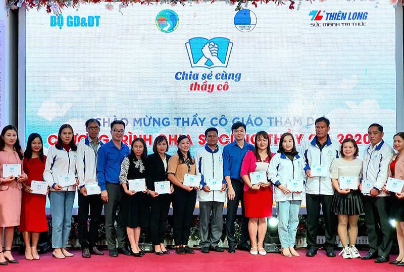 Web.ĐTN: Tối 16/11 tại Hà Nội, T.Ư Hội Liên hiệp Thanh niên (LHTN) Việt Nam đã trao sổ tiết kiệm và các phần quà tặng 63 giáo viên dân tộc thiểu số tiêu biểu tham dự lễ tuyên dương chương trình "Chia sẻ cùng thầy cô", mỗi sổ trị giá 10 triệu đồng.