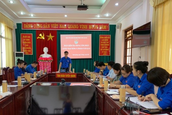 Web.ĐTN: Ngày 25/5, Đoàn kiểm tra Trung ương Đoàn đã làm việc, kiểm tra Chuyên đề Công tác xây dựng Đoàn, việc thu, chi đoàn phí và việc sử dụng các nguồn quỹ khác của Đoàn theo quy định của Điều lệ Đoàn và Hướng dẫn thực hiện Điều lệ Đoàn tại tỉnh Tuyên Quang.