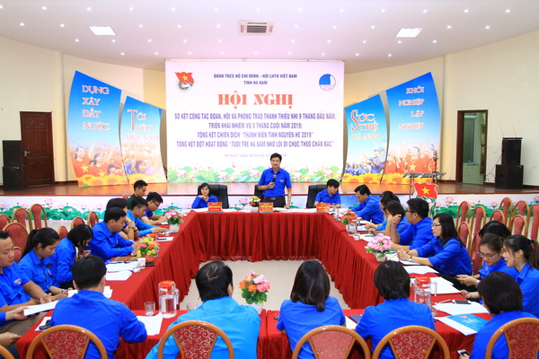 Web.ĐTN: Ngày 8/10, BTV Tỉnh đoàn - Ủy ban Hội LHTN tỉnh tổ chức hội nghị sơ kết công tác Đoàn, Hội và phong trào thanh thiếu nhi 9 tháng đầu năm, triển khai nhiệm vụ trọng tâm 3 tháng cuối năm 2019; tổng kết Chiến dịch Thanh niên tình nguyện hè; tổng kết đợt hoạt động “Tuổi trẻ Hà Nam nhớ lời Di chúc theo chân Bác”