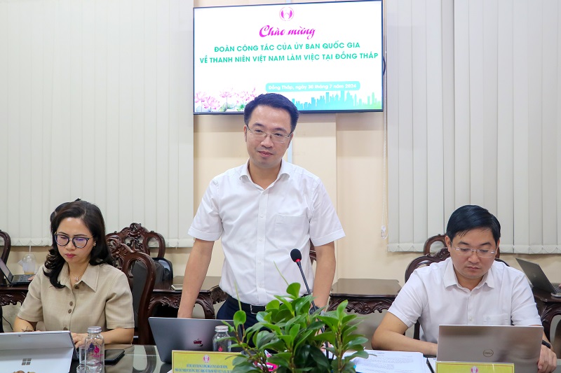 Ngày 30/7, Đoàn công tác của UBQG về thanh niên Việt Nam do đồng chí Nguyễn Tường Lâm - Bí thư T.Ư Đoàn, Phó Chủ tịch T.Ư Hội LHTN Việt Nam, Phó Chủ nhiệm Thường trực UBQG về thanh niên Việt Nam làm Trưởng đoàn đã có buổi làm việc với UBND tỉnh Đồng Tháp về kết quả thực hiện chính sách, pháp luật về khởi nghiệp cho thanh niên giai đoạn 2021 - 2024.