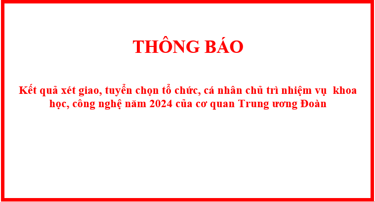 ĐTN: Cơ quan Trung ương Đoàn thông báo Kết quả xét giao, tuyển chọn tổ chức, cá nhân chủ trì nhiệm vụ khoa học, công nghệ năm 2024.