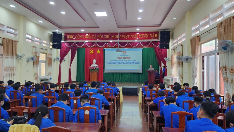 ĐTN: Chiều 28/6, Tỉnh Đoàn Bình Phước đã tổ chức tập huấn chuyên đề về công tác kiểm tra, giám sát và xử lý đơn khiếu nại, tố cáo, kiến nghị, phản ánh và xử lý kỷ luật năm 2023 cho gần 120 cán bộ đoàn chuyên trách, ủy viên ủy ban kiểm tra đoàn cấp huyện và cán bộ đoàn chuyên trách cơ sở.