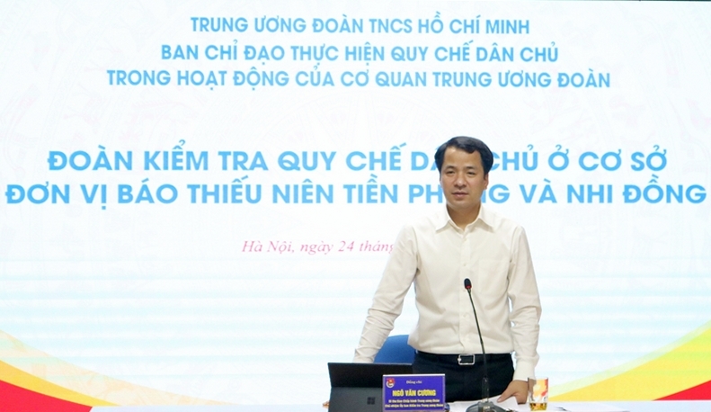 ĐTN: Sáng 24/5, Đoàn kiểm tra việc thực hiện Quy chế dân chủ năm 2023 cơ quan T.Ư Đoàn đã làm việc với tập thể lãnh đạo và cán bộ, viên chức, người lao động Báo Thiếu niên Tiền phong và Nhi đồng về việc triển khai thực hiện quy chế dân chủ tại đơn vị.