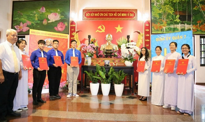 ĐTN: Ngày 05/6, nhân kỷ niệm 112 năm ngày Bác Hồ ra đi tìm đường cứu nước, tại Nhà tưởng niệm Bác Hồ (Quận 7, TP HCM), 08 học sinh trung học phổ thông của Quận 7 đã được kết nạp Đảng. Đây là những đoàn viên ưu tú, chiến sĩ tình nguyện Hoa phượng đỏ các năm 2021, 2022, 2023.
