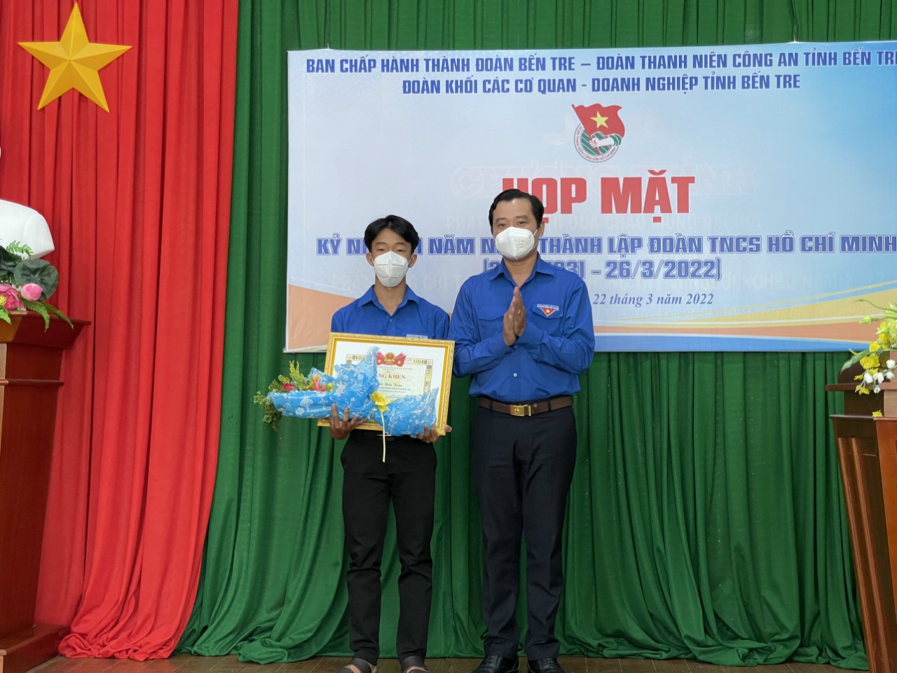 ĐTN: Sáng ngày 22/3/2022 Ban Thường vụ Tỉnh đoàn đã trao bằng khen cho em Lê Hữu Toàn – tình nguyện viên Thành đoàn Bến Tre với thành tích có hành động dũng cảm cứu người.