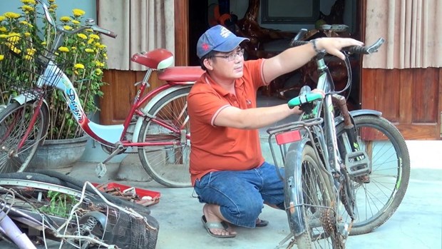Thương học sinh, thầy Huỳnh Quang Sơn, giáo viên trường Trung học Cơ sở Đinh Núp đã có sáng kiến gom, nhặt những chiếc xe đạp cũ sửa chữa lại tặng học sinh nghèo.