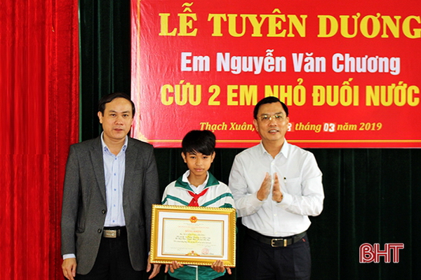 Nam sinh cứu 2 em nhỏ đuối nước nhận bằng khen Chủ tịch UBND tỉnh Hà Tĩnh
