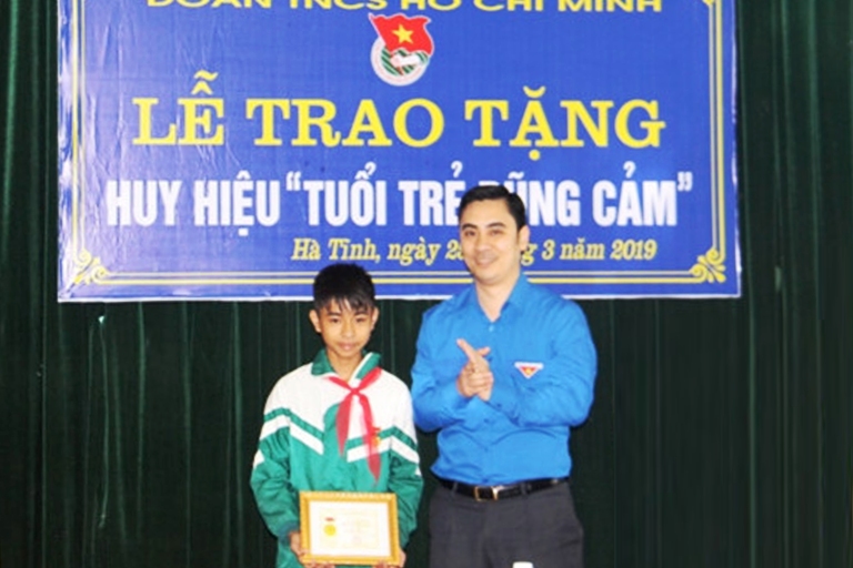 Hà Tĩnh: Trao Huy hiệu Tuổi trẻ dũng cảm cho nam sinh cứu sống 2 em nhỏ bị đuối nước