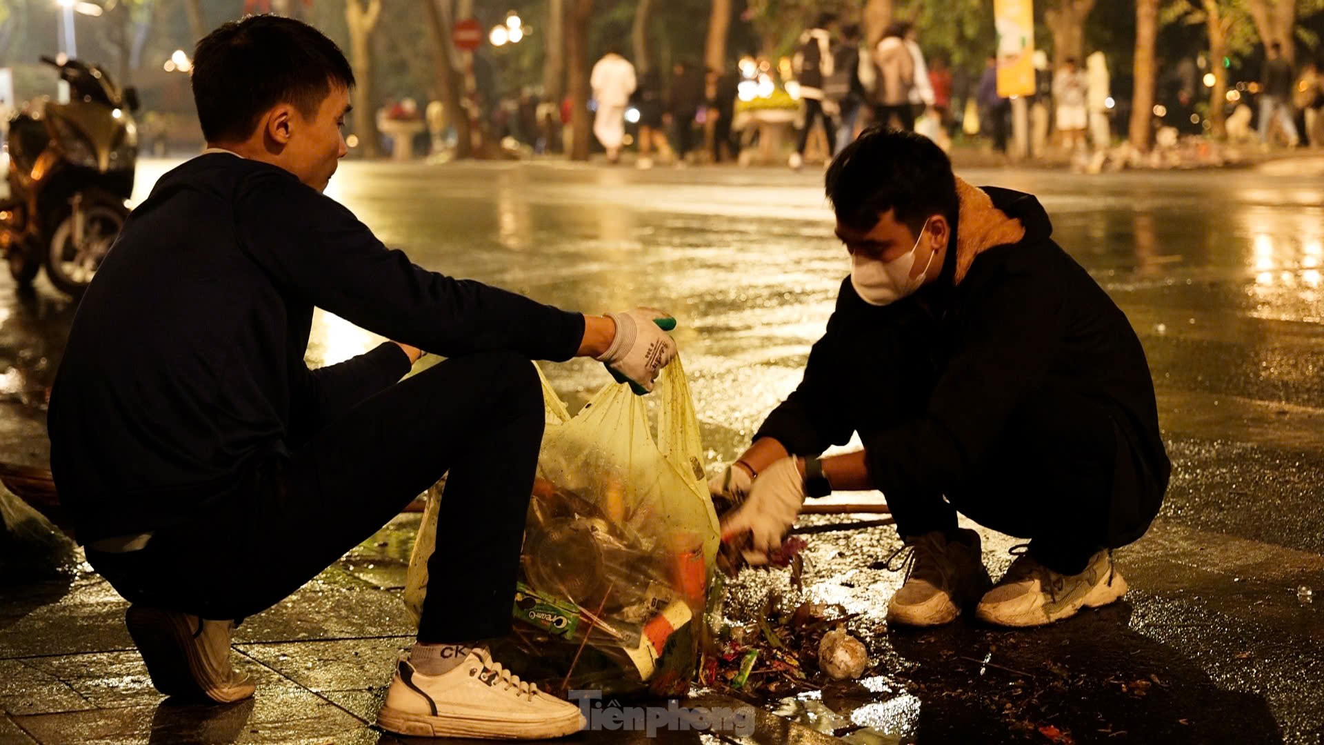 Sau đêm hội âm nhạc "Countdown" chào đón năm mới 2025, khi ánh đèn sân khấu đã tắt và dòng người tấp nập dần thưa, nhiều bạn trẻ vẫn ở lại, cùng nhau nhặt rác, giữ gìn vẻ xanh - sạch - đẹp của phố đi bộ Hoàn Kiếm (Hà Nội).