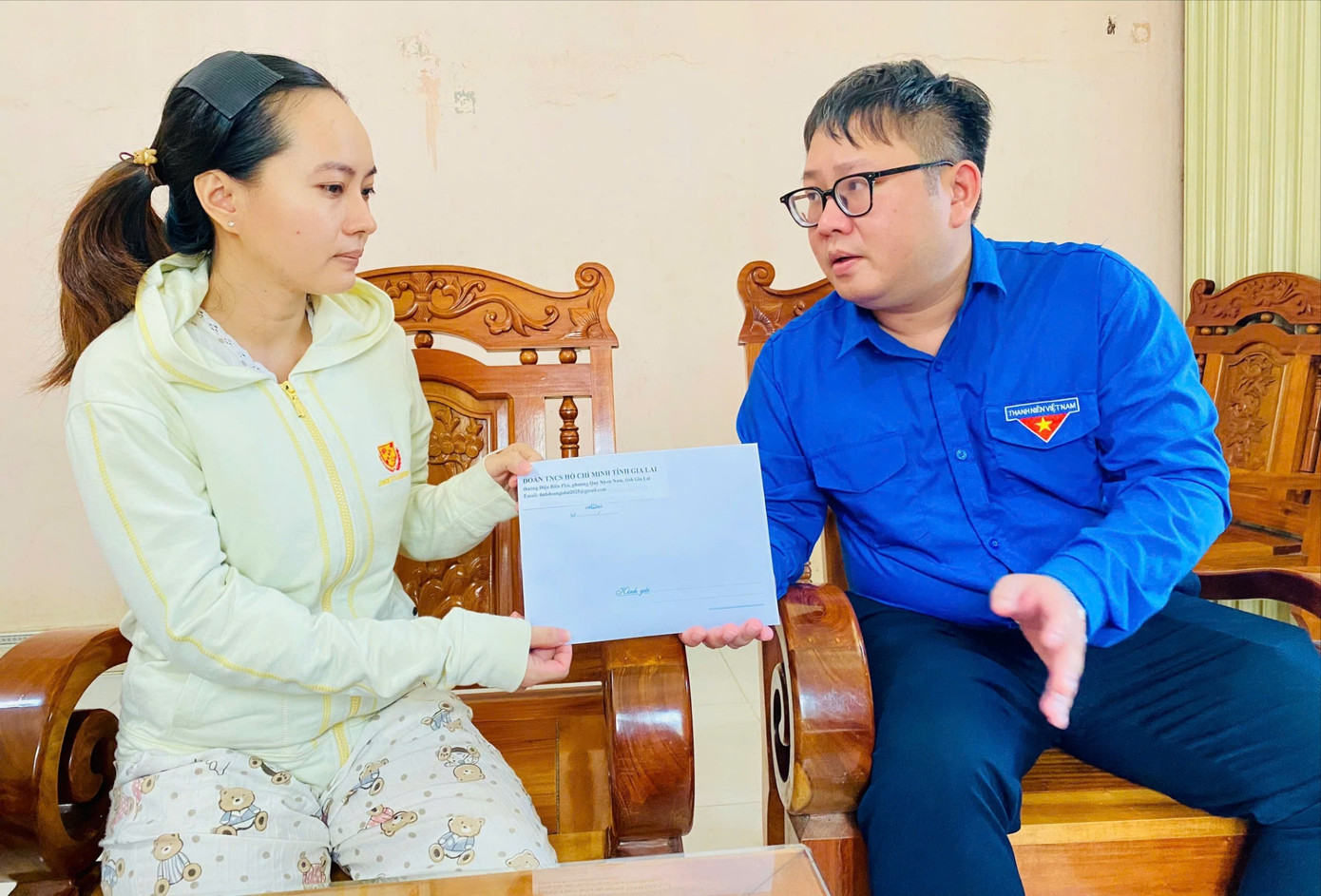 Tỉnh Đoàn Gia Lai đến thăm, chia buồn và hỗ trợ gia đình đoàn viên Đinh Văn Quang, người tử nạn khi khắc phục hậu quả bão số 13. Hoạt động thể hiện sự quan tâm, nghĩa tình của tổ chức Đoàn - Hội đối với đoàn viên.