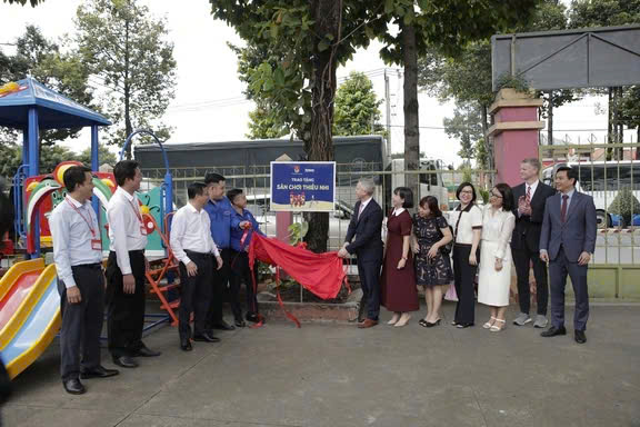 T.Ư Đoàn và Công ty TNHH Amway Việt Nam (Amway Việt Nam) đã tổ chức lễ trao tặng sân chơi thiếu nhi và dụng cụ tập thể dục thể thao ngoài trời tại phường Bình Dương, TP.HCM (ngày 18.11).