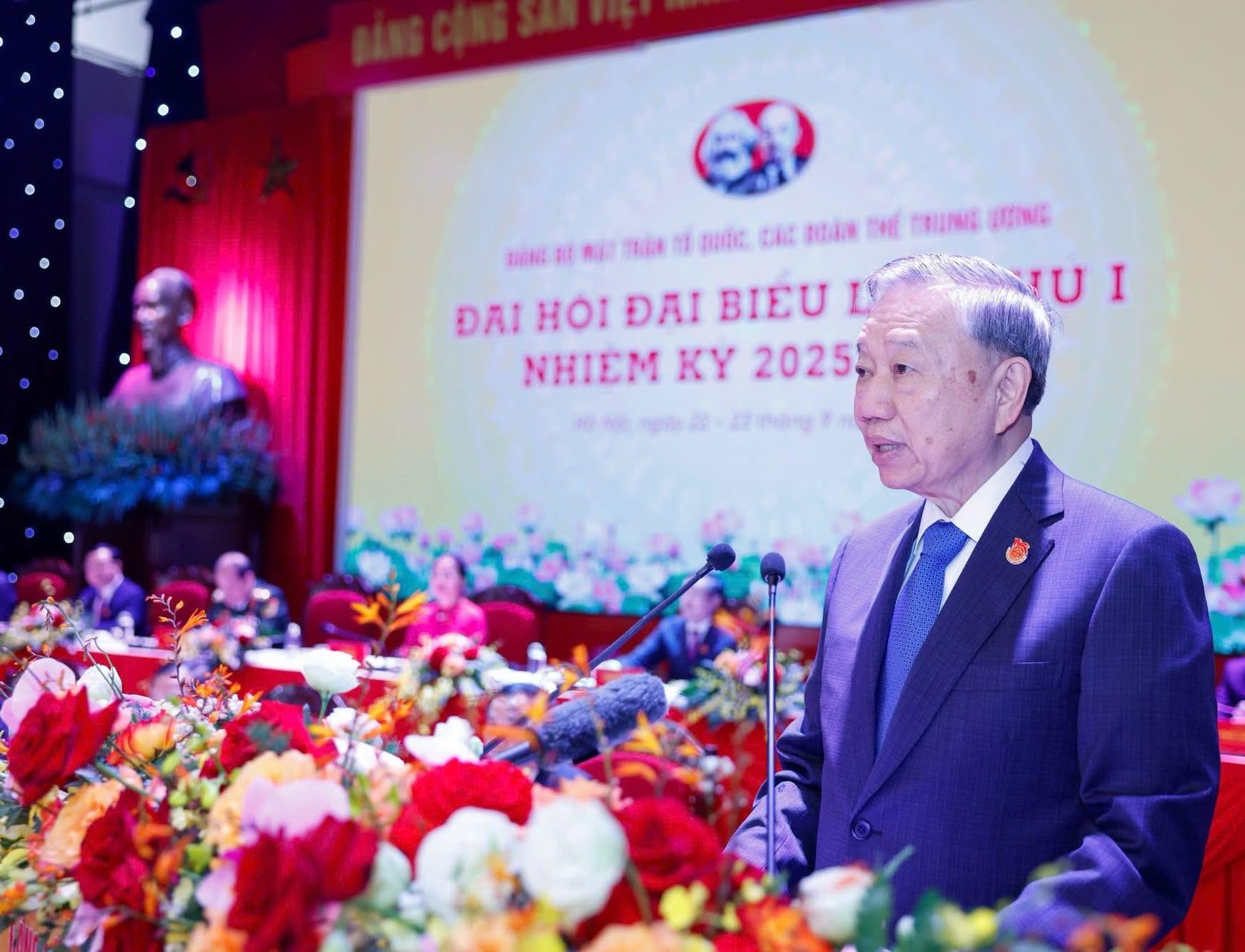 Sáng 23/9, tại Hà Nội, Đại hội đại biểu Đảng bộ Mặt trận Tổ quốc (MTTQ), các đoàn thể Trung ương lần thứ I, nhiệm kỳ 2025-2030, khai mạc trọng thể. Tổng Bí thư Tô Lâm dự và có bài phát biểu chỉ đạo quan trọng tại Đại hội. Xin trân trọng giới thiệu bài phát biểu của đồng chí Tổng Bí thư: