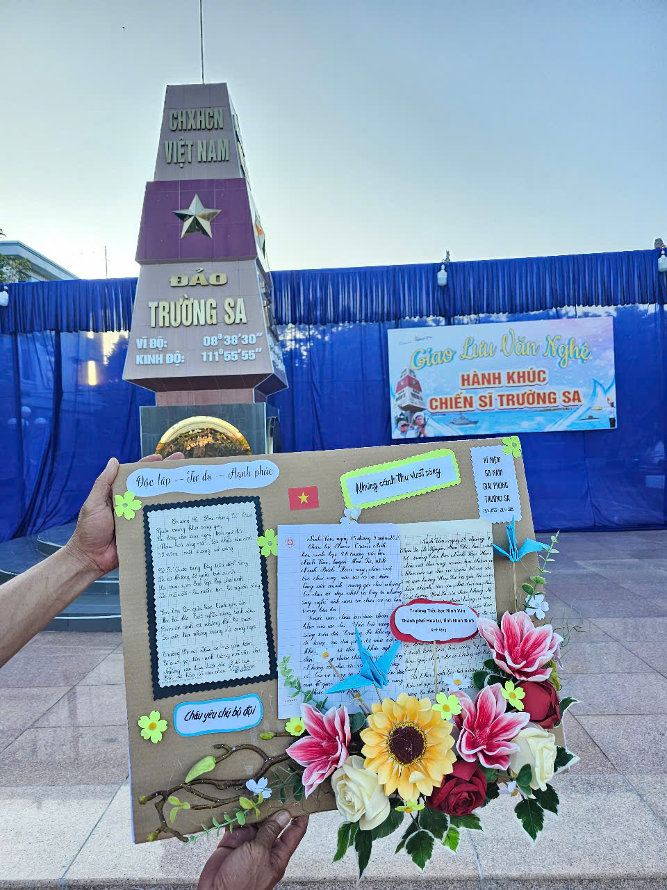 Tham gia hoạt động viết thư, Lê Nguyễn Kim Chi, học sinh Trường THCS Ninh Vân (tỉnh Ninh Bình), cho biết: “Khi viết những lá thư gửi các chú bộ đội, thật lòng là em rất xúc động. Em chỉ muốn hỏi thăm sức khỏe các chú và kể cho các chú nghe một chút về quê hương Hoa Lư của em nơi có núi đá vôi đẹp lắm, có đồng xanh, sông trong, và cũng là kinh đô đầu tiên của nước mình. Trong thư, em chỉ mong gửi tới các chú lời cảm ơn thật chân thành, mong các chú luôn mạnh khỏe để canh giữ biển trời Tổ quốc. Em cũng tự hứa với mình là sẽ chăm học, ngoan ngoãn, cố gắng thật nhiều để mai này lớn lên trở thành một người có ích, xứng đáng với sự hy sinh của các chú ngoài đảo xa”.