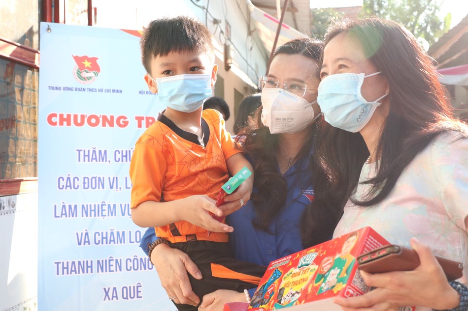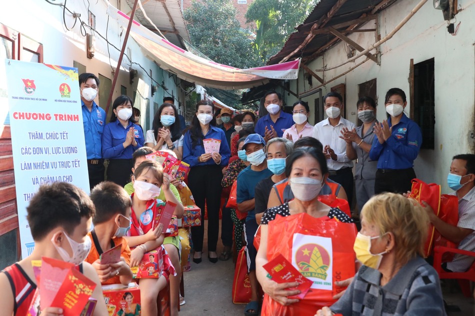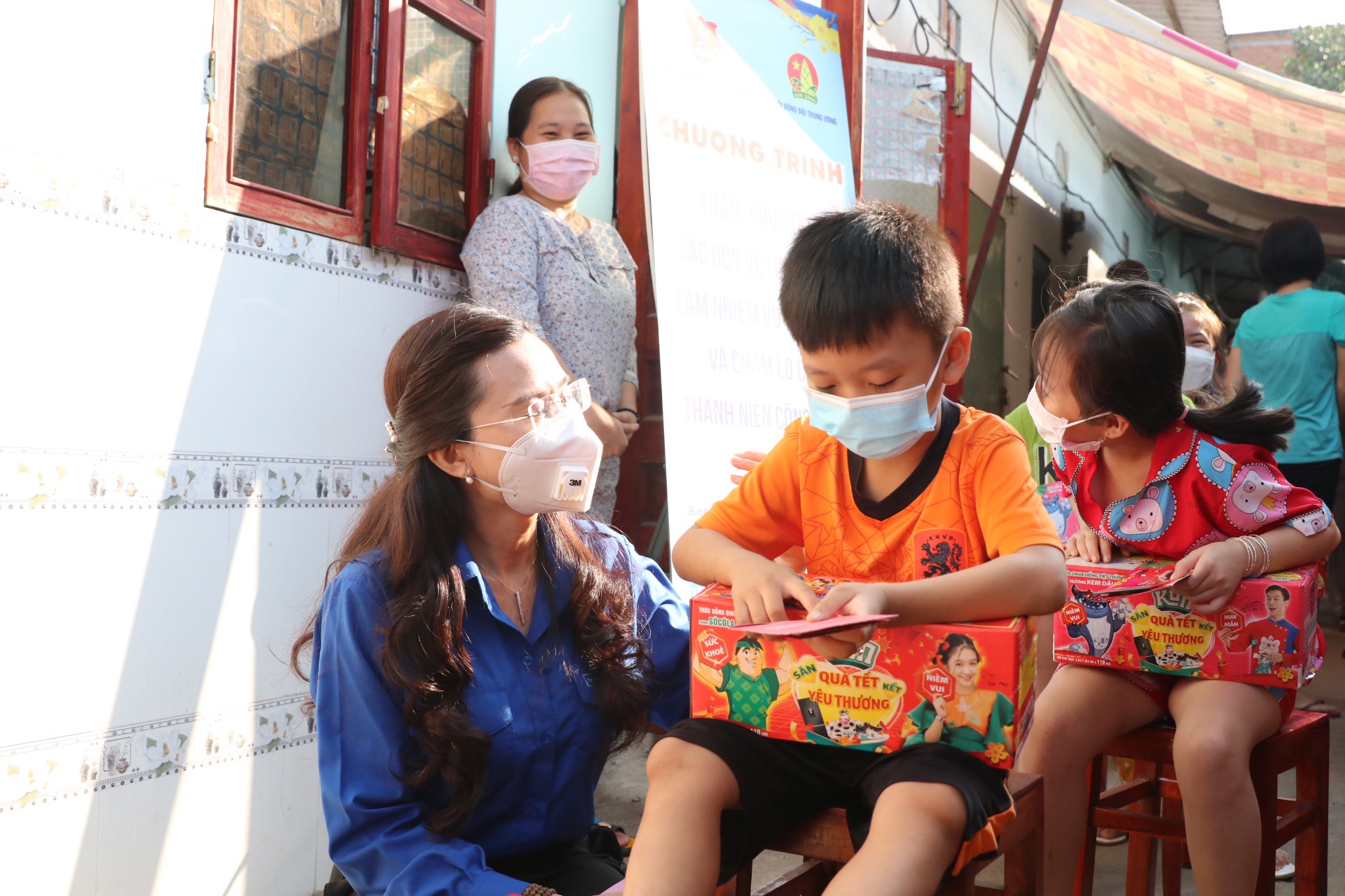 Tại khu nhà trọ Tuyết Loan, Trung ương Đoàn và Hội đồng đội Trung ương đã trao tặng 13 phần quà ý nghĩa cho chủ khu trọ và các hộ gia đình TNCN có hoàn cảnh khó khăn ở lại đón Tết tại Bình Dương và trao tặng các bao lì xì cho các em thiếu nhi tại nhà trọ. Được biết, Nhà trọ Tuyết Loan là một trong những khu nhà trọ dành cho các gia đình thanh niên công nhân đang lao động, sản xuất tại tỉnh Bình Dương. Trong thời gian qua, chủ nhà trọ luôn quan tâm, hỗ trợ, giúp đỡ cho thanh niên công nhân và gia đình có nơi ở ổn định, thuận lợi trong quá trình sinh sống và làm việc.