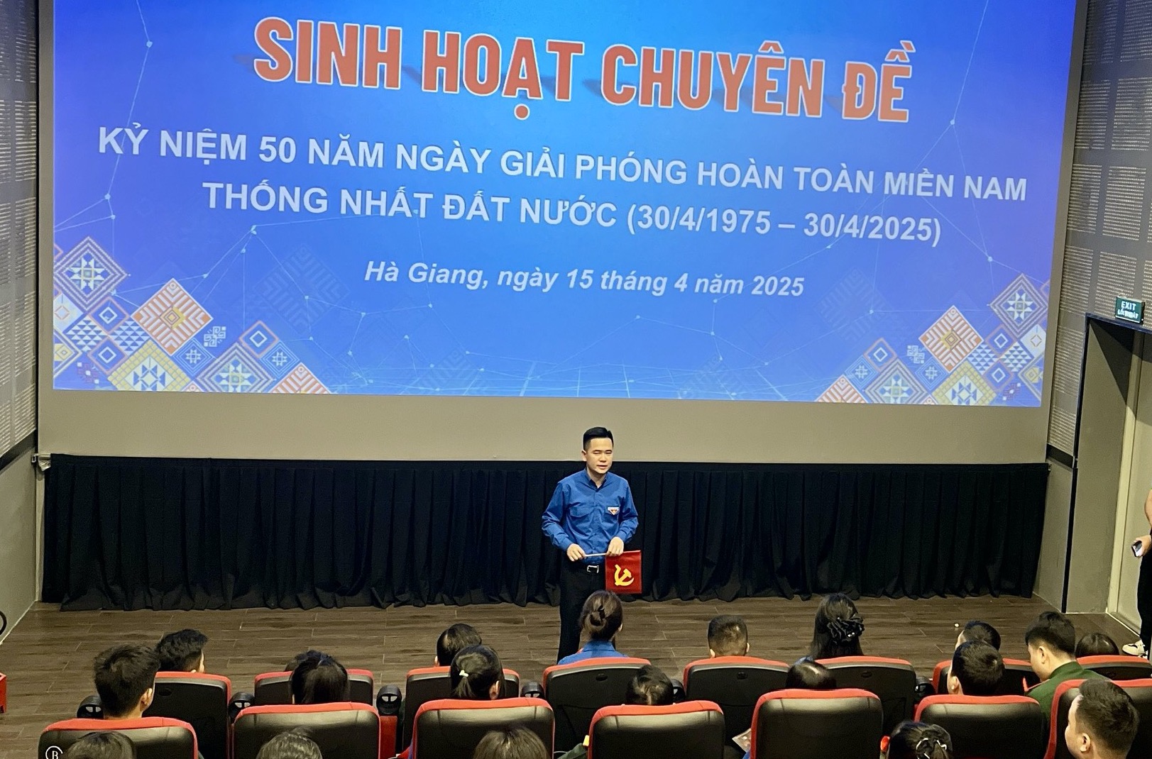 Công tác tuyên truyền, giáo dục ĐTN: Chiều 15/04/2025, tại tỉnh Hà Giang, Tỉnh đoàn tổ chức chương trình Sinh hoạt chuyên đề Kỷ niệm 50 năm ngày giải phóng miền Nam, thống nhất đất nước (30/4/1975 -30/4/2025) qua hoạt động xem phim “Địa đạo: Mặt trời trong bóng tối”.