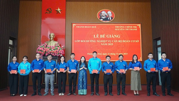 3 Chương trình Sáng ngày 31/12/2025, tại trường Chính trị Nguyễn Chí Thanh, Ban Thường vụ Thành đoàn Huế phối hợp với Ban Giám hiệu Trường Chính trị Nguyễn Chí Thanh tổ chức bế giảng Lớp bồi dưỡng nghiệp vụ cán bộ Đoàn cơ sở năm 2025.