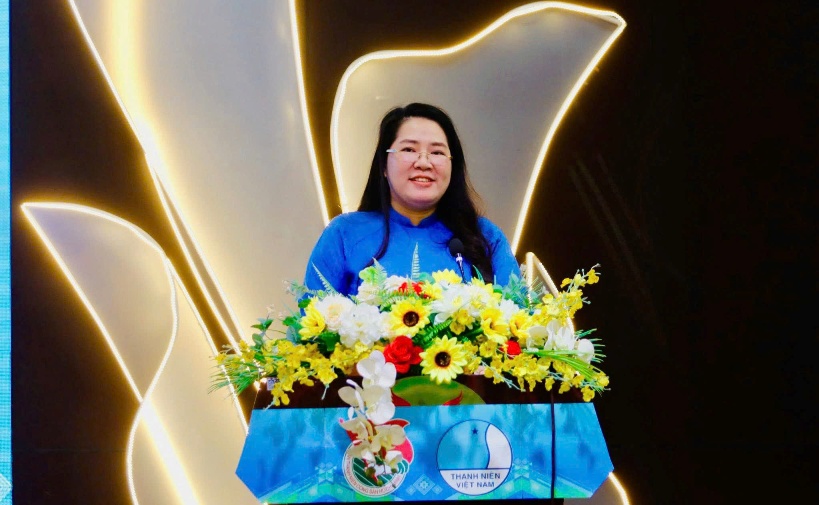 Đồng chí Nguyễn Thị Phương Thúy - Tỉnh ủy viên, Bí thư Tỉnh đoàn, Chủ tịch Hội LHTN Việt Nam tỉnh phát biểu chỉ đạo tại Đại hội