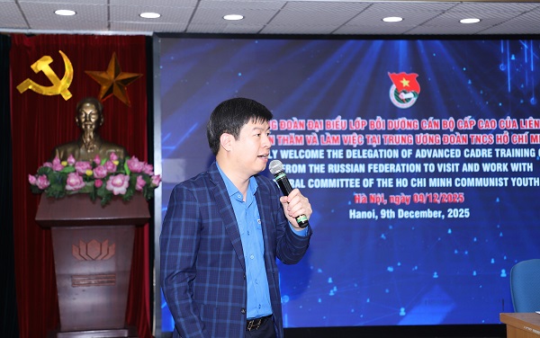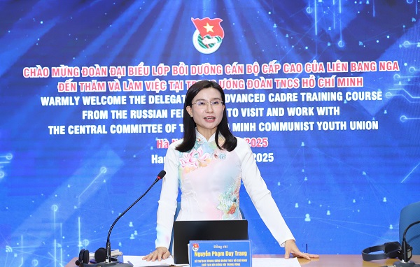 Phát biểu tại lớp bồi dưỡng, đồng chí Nguyễn Phạm Duy Trang – Bí thư Trung ương Đoàn, Chủ tịch Hội đồng Đội Trung ương bày tỏ vui mừng, vinh dự thay mặt Ban Bí thư Trung ương Đoàn TNCS Hồ Chí Minh, tuổi trẻ Việt Nam đón tiếp đoàn cán bộ cấp cao của Liên bang Nga đến thăm, làm việc tại trụ sở Trung ương Đoàn.