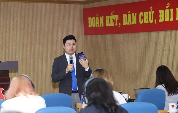 Đồng chí Nguyễn Phạm Duy Trang báo cáo chuyên đề tại chương trình