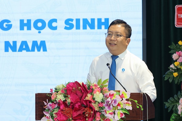 Đồng chí Trần Việt Tuấn, Phó Bí thư Thành đoàn, Chủ tịch Hội Sinh viên Việt Nam thành phố Cần Thơ phát biểu ôn lại truyền thống tại chương trình.